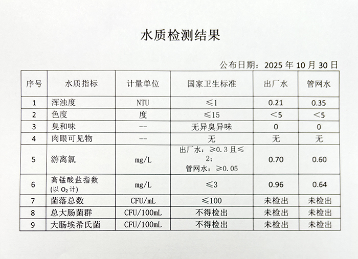 出厂水43项检测结果